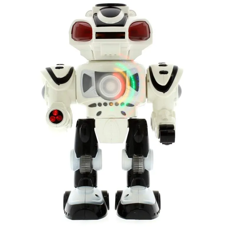 Robot lanza discos con hélice giratoria. Este robot de ojos grandes lanza discos al a vez que sus ojos se iluminan y su hélice gira.