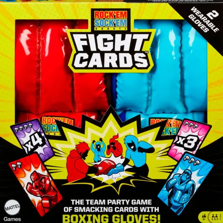 Trepidante juego de mesa en el que un jugador de cada equipo se pone un guante de boxeo robotizado y cada vez que se juego la carta adecuada, los jugadores con guantes deben apresurarse a golpear las cartas con sus guantes ¡El jugador que dé el puñetazo más rápido se quedará con las cartas! De 2 a 6 jugadores. Recomendado a partir de 8 años.