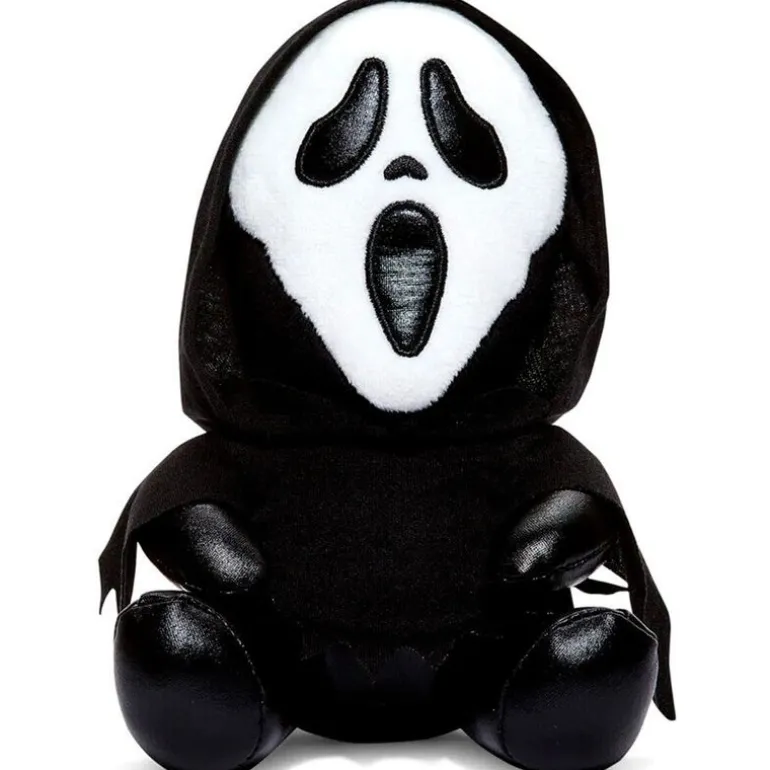 Peluche de la colección Kidrobot con diseños inspirados en el personaje Ghostface de la famosa película de terror Scream. Su tamaño es de 20 cm aproximadamente.