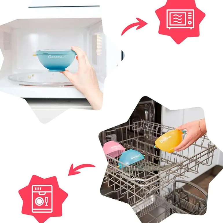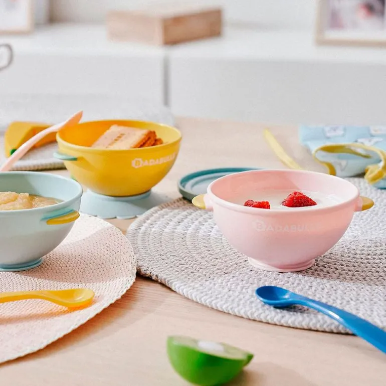 Juego de 3 bols con tapa antideslizante con capacidad de 330ml, las tapas se pueden intercambiar, a partir de los 4m.