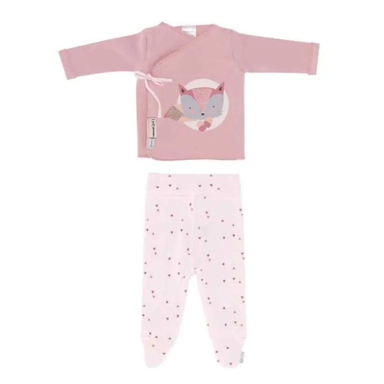Incluye todo lo necesario para los primeros días del bebe: jersey, polaina, gorrito, manoplas y babero.
