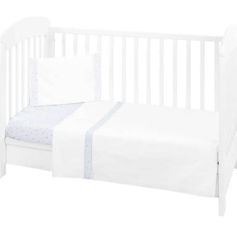 Este set de sábanas está compuesto por una almohada, funda de almohada, funda nórdica, relleno, bajera ajustable y protector de cuna (chichonera).