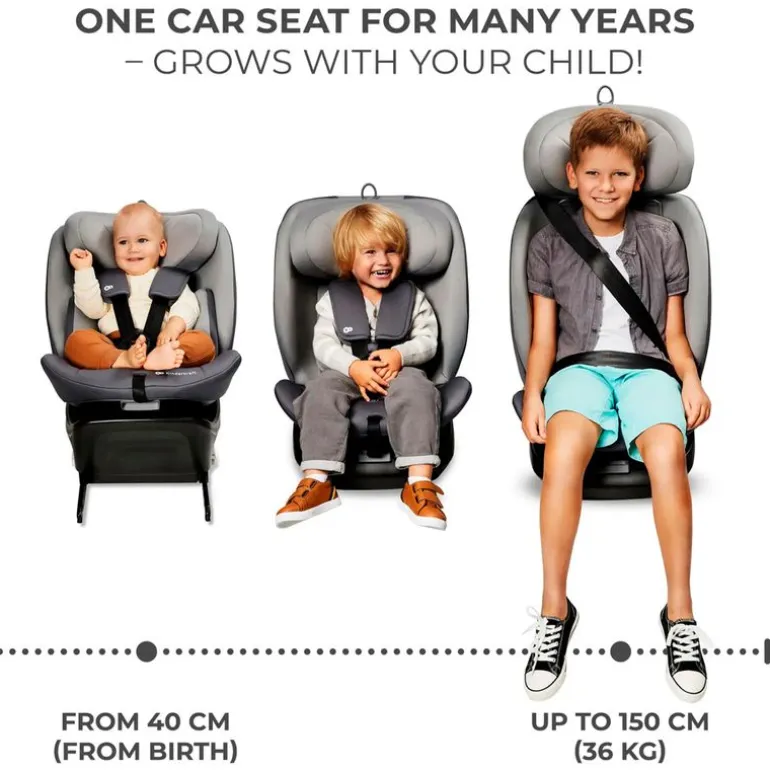 Silla I-Grow i-Size va desde los 40 cm hasta los 150cm de alto (desde el nacimiento hasta los 12 años), giratoria 360ª con isofix y top tether. Regalo Protector de Asiento de Coche.