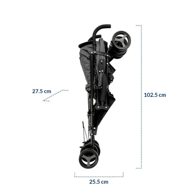 Silla de paso muy ligera de plegado compacto a partir de 6 meses con doble rueda para adaptarse a todo tipo de terrenos.