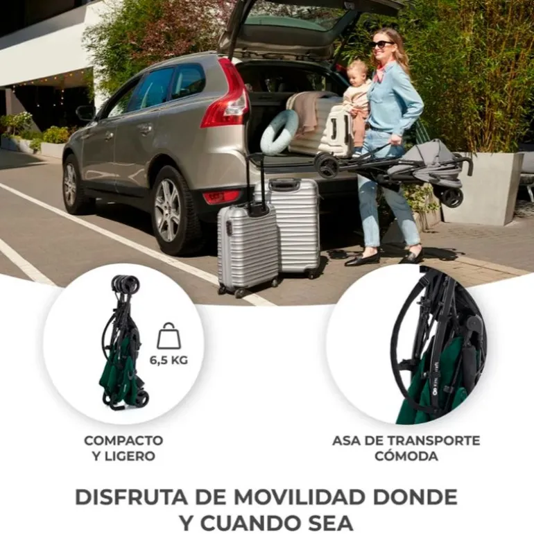 Tik es una silla de paseo muy ligera con plegado tipo paraguas que solo pesa 6.5kg lo que la hace muy manejable, incluso para llevarla de vacaciones ya que se puede reclinar totalmente para que él bebe pueda dormir tranquilamente.