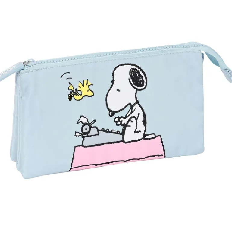 Portatodo triple con diseños inspirados en el simpático perrito Snoopy. Dispone de 3 compartimentos diferentes en los que podrás guardar en el interior tus pequeños accesorios escolares. Sus dimensiones son de 12 cm x 22 cm x 3 cm aproximadamente.