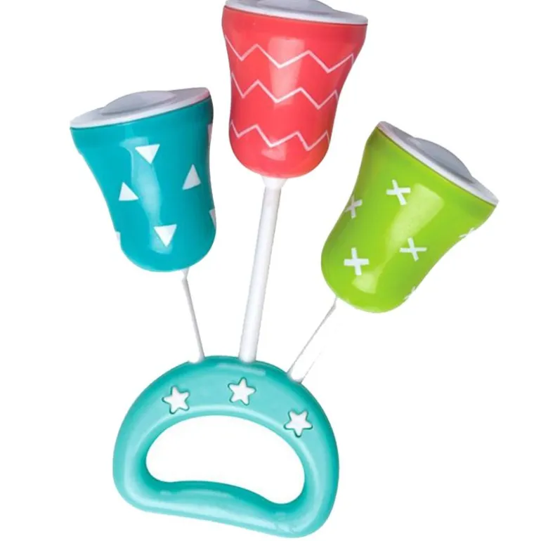 Sonajero con mango para que los bebés lo puedan coger fácilmente. Entretiene y divierte al bebé favoreciendo el desarrollo de la coordinación infantil. Con divertidos colores