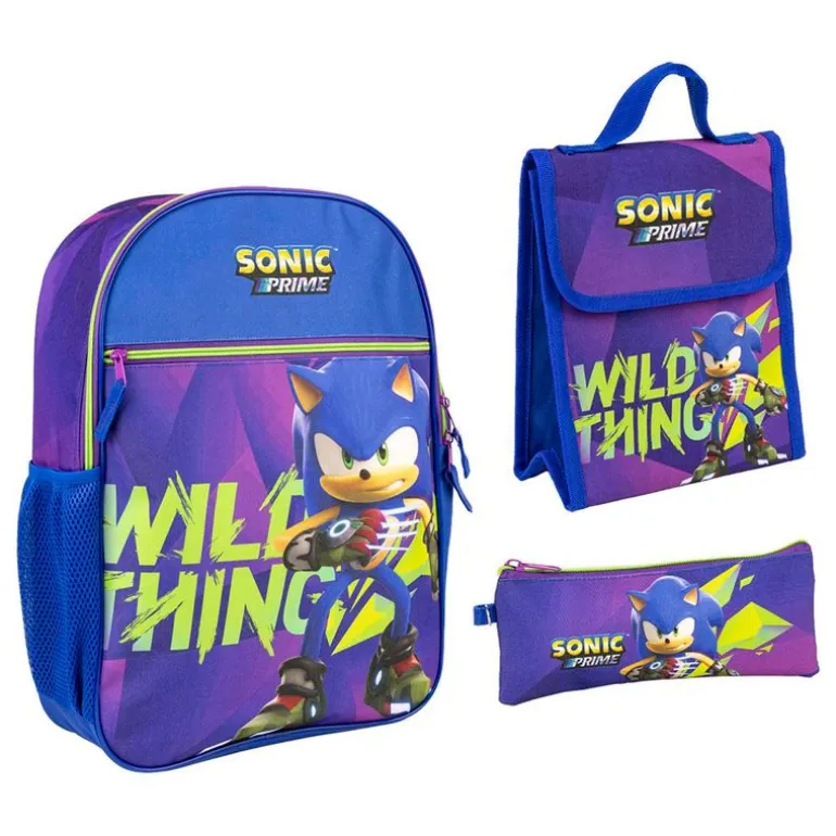 Pack con diseños inspirados en el erizo de videojuegos Sonic en el que encontrarás una mochila, un portameriendas y un estuche. La mochila dispone de 2 compartimentos, de diferente tamaño, y un bolsillo de rejilla para poder llevar botellas. Las dimensiones de la mochila son de 42 cm x 31 cm x 11 cm aproximadamente, adaptable a carro NO incluido. El portatodo tiene unas dimensiones de 8 cm x 20 cm aproximadamente. El portameriendas tiene unas dimensiones de 21 cm x 12 cm x 18 cm aproximadamente.