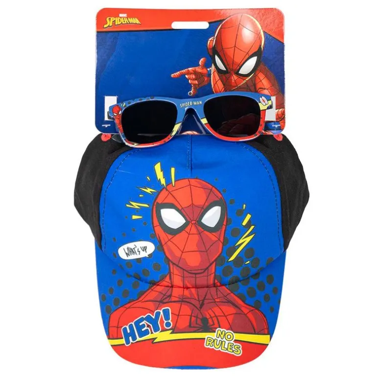 Pack en el que encontrarás un par de gafas de sol y una gorra con diseños inspirados en el superhéroe Spiderman.