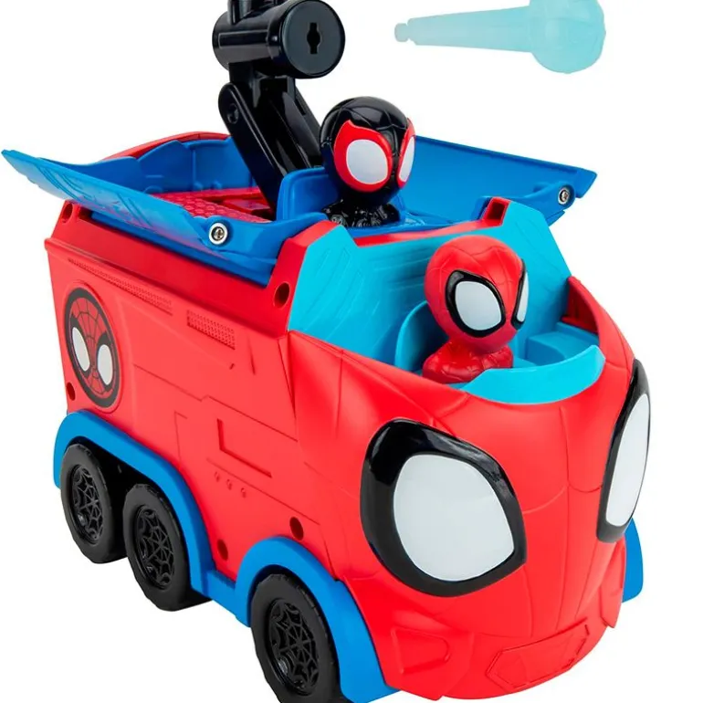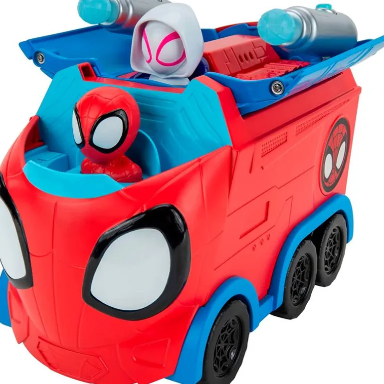 Vehículo transformable de la colección Spidey & sus amigos que cuenta con los personajes de Spidey, Ghost y Miles Morales. Gira el dial del transportador para que puedan aparecer los diferentes personajes y disparar los dardos. Recomendado a partir de 3 años.