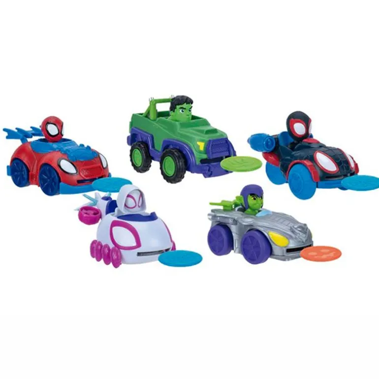 Mini vehículo inspirado en la serie de animación Spidey y sus amigos. El vehículo mide 10 cm y dispone de 2 discos de disparo. EXISTEN MODELOS DIFERENTES. SE VENDEN POR SEPARADO. SE SURTIRÁN SEGÚN EXISTENCIAS. AL REALIZAR LA COMPRA, PUEDES RECIBIR CUALQUIER MODELO SURTIDO AL AZAR, INCLUIDOS MODELOS QUE NO SE ENCUENTREN EN LAS FOTOS. PRECIO POR UNIDAD.
