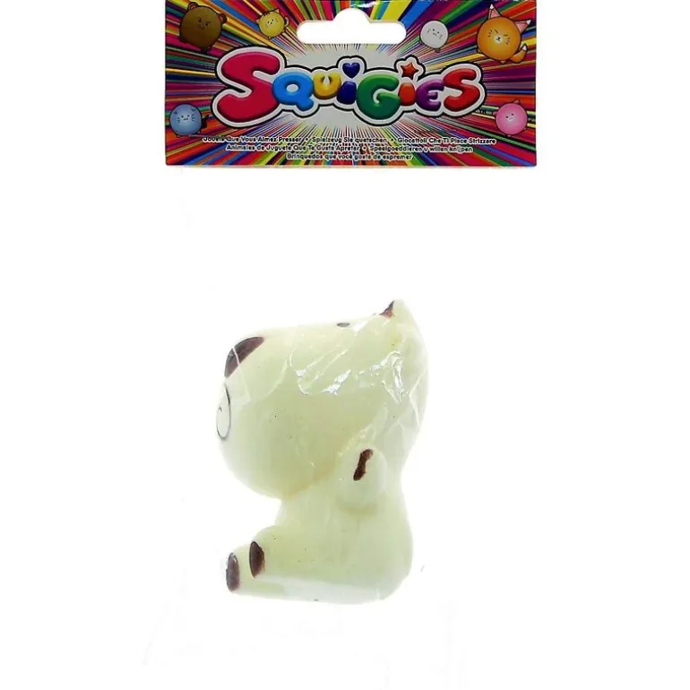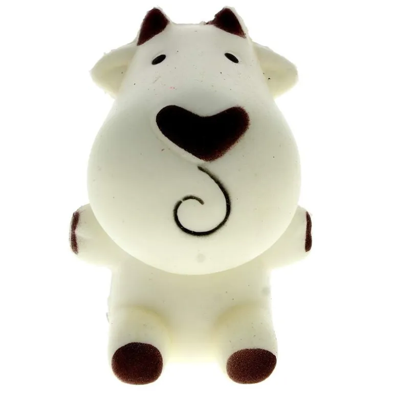 Squishy de 10 cm aproximadamente con la forma de una vaca, con una simpática expresión. Observa como vuelve lentamente a su forma original después de estrujarlo. Recomendado a partir de 3 años.