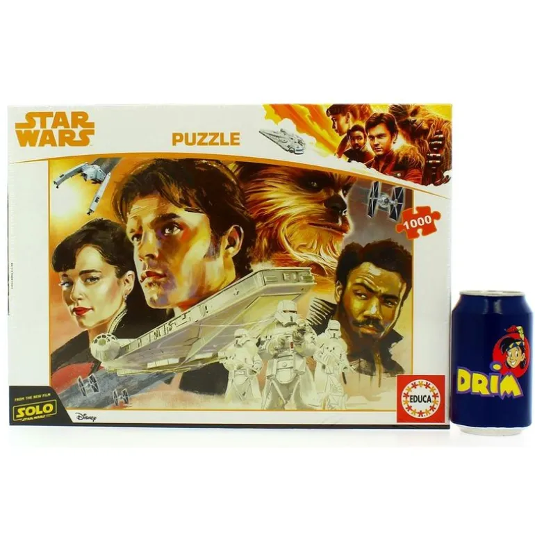 Puzzle de 1.000 piezas en el que se muestra la imagen de los personajes que aparecen en la película Han Solo: Una historia de Star Wars. Entre ellos encontramos a Han Solo, Chewbacca, Lando Carlissian y el mítico Halcón Milenario.