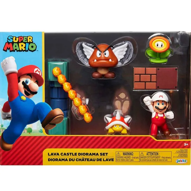 Contiene también las figuras de Mario de Fuego, un Spiny, un Para Goomba y una flor de fuego.