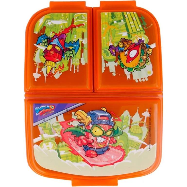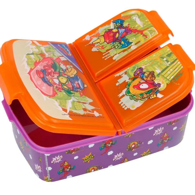 Sandwichera infantil, con original diseños inspirados en el Superzings, con compartimentos para que los más pequeños de la casa puedan llevar su merienda al parque, al colegio o más. Está fabricada en un material resistente, aguantará las caídas y golpes accidentales de uso diario. Libre de BPA. Tiene unas dimensiones de 6.7 cm de alto x 19.5 cm de ancho x 19.5 cm de fondo aproximadamente.