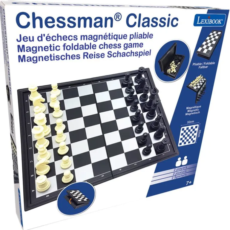 Clásico juego de ajedrez en versión magnética. Al ser magnético las piezas se quedan adheridas al tablero y no se caen en caso de que uno de los jugadores mueva el tablero sin querer. Es plegable por lo que puedes guardar las piezas en el interior y es ideal para llevarlo contigo a cualquier lado. Las dimensiones del tablero son de 32 cm x 32 cm x 2 cm, plegado tiene unas dimensiones de 32 cm x 4 cm x 16 cm aproximadamente. Recomendado a partir de 7 años.