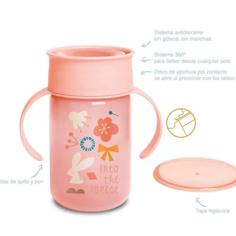 Vaso de aprendizaje para +12m eses de 340ml de capacidad, para que puedan aprender a beber solitos, para poder utilizar la taza o vaso de mayores.