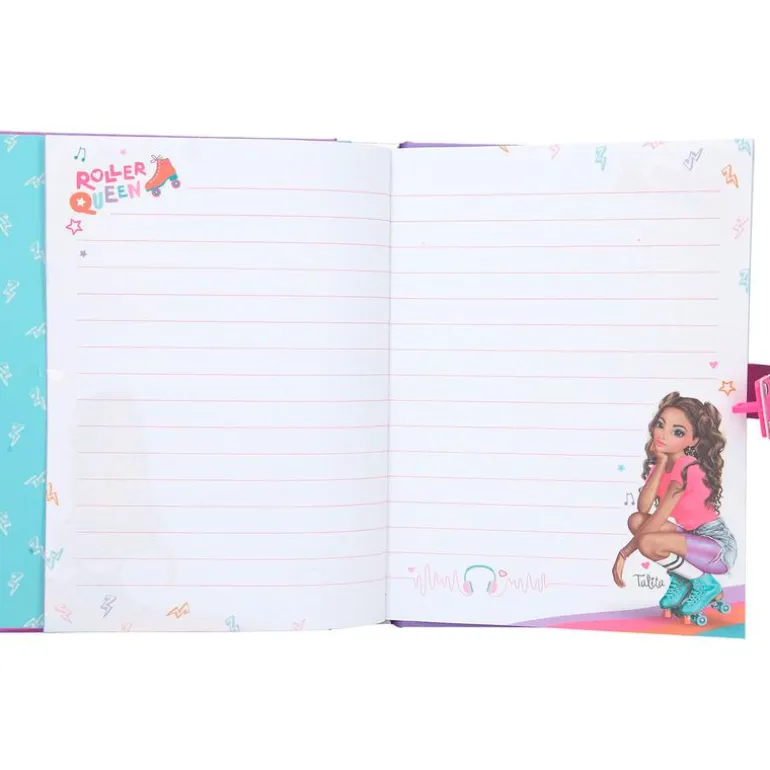 Diario con código de la colección TOP MODEL con un bonito diseño de una modelo acompañada de mariposas. Se abre al introducir un código de 4 dígitos que podrás personalizar y modificar. Al abrirse suena el fragmento de una conocida canción de Tik Tok. Dispone de 80 páginas.