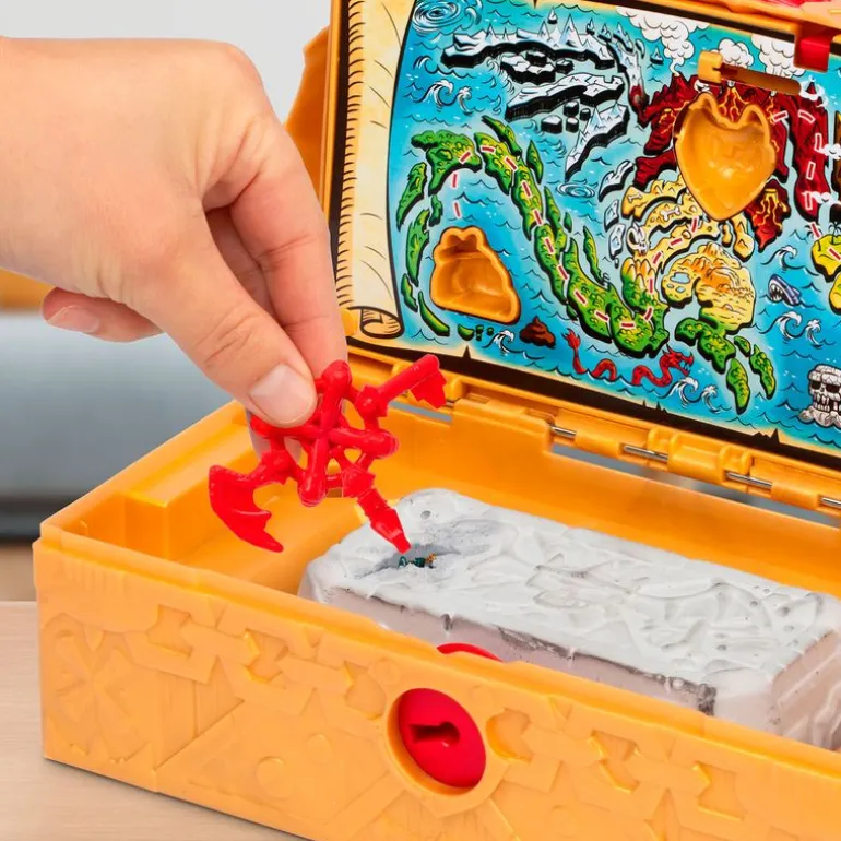 Rompe la estructura de la roca para descubrir un tesoro lleno de sorpresas, incluyendo mini figuras, deslumbrantes armaduras doradas y tesoros de dragón.