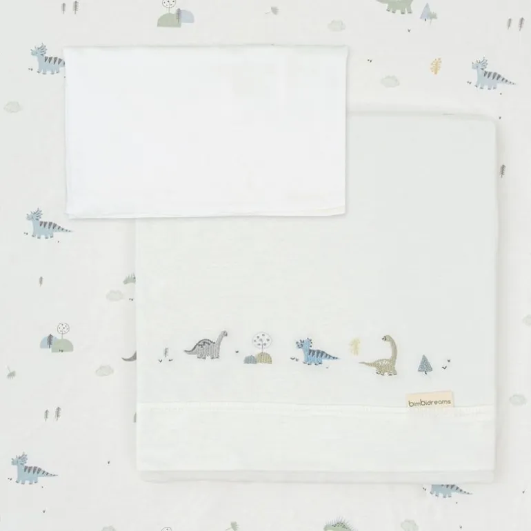 Tríptico de sábanas con la bajera en color liso, mientras que la sábana encimera muestra el estampado de un divertido dibujo