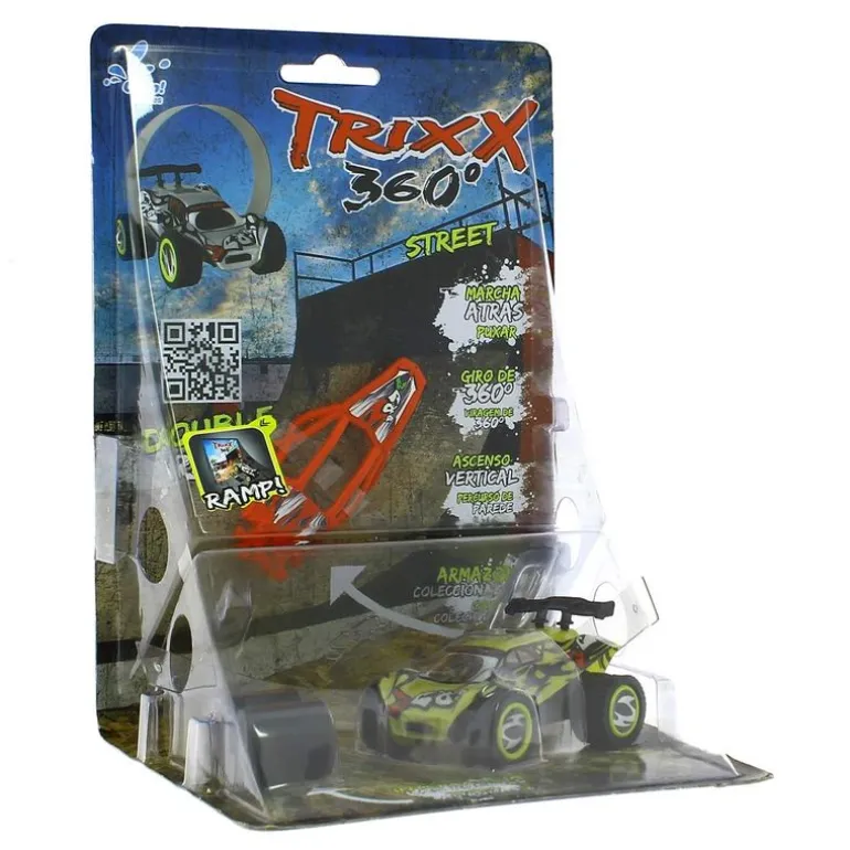 ¡Pásalo en grande con la colección Trixx 360! Gracias a su caja podrás crear un circuito y hacer las acrobacias más alocadas. En el interior del set encontrarás un vehículo amarillo, una rampa pequeña, una rampa grande y accesorios intercambiables. Recomendado a partir de 3 años.