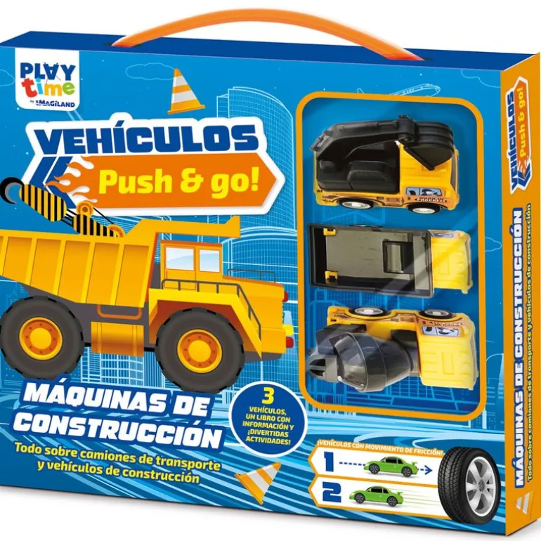 Pack en el que encontrarás 3 máquinas de construcción, un libro con información y divertidas actividades.