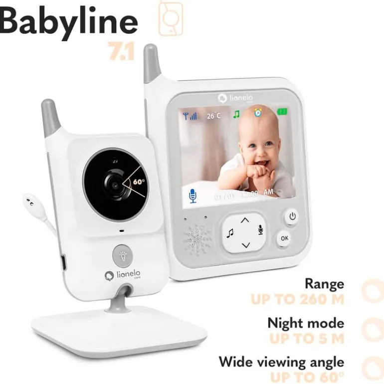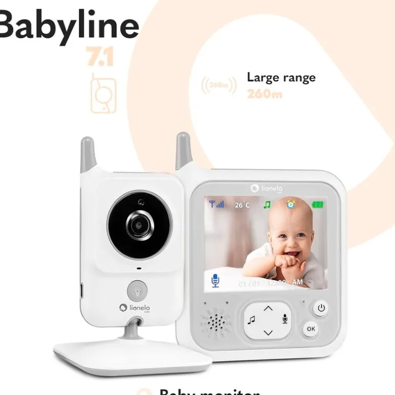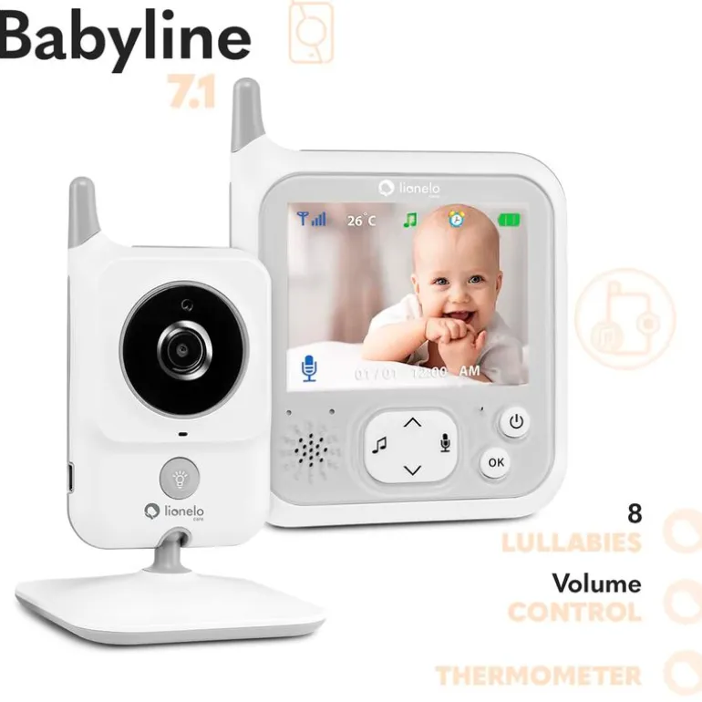Babyline de 7.1 es un vigila bebe muy completo que tiene la cámara con micro, altavoz e indicador de temperatura incorporado.