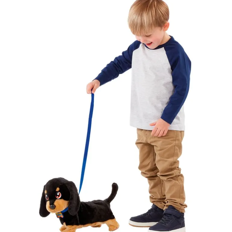 Al presionar su cabeza, Waggles comenzará a ladrar para que lo saques a pasear con su correa.