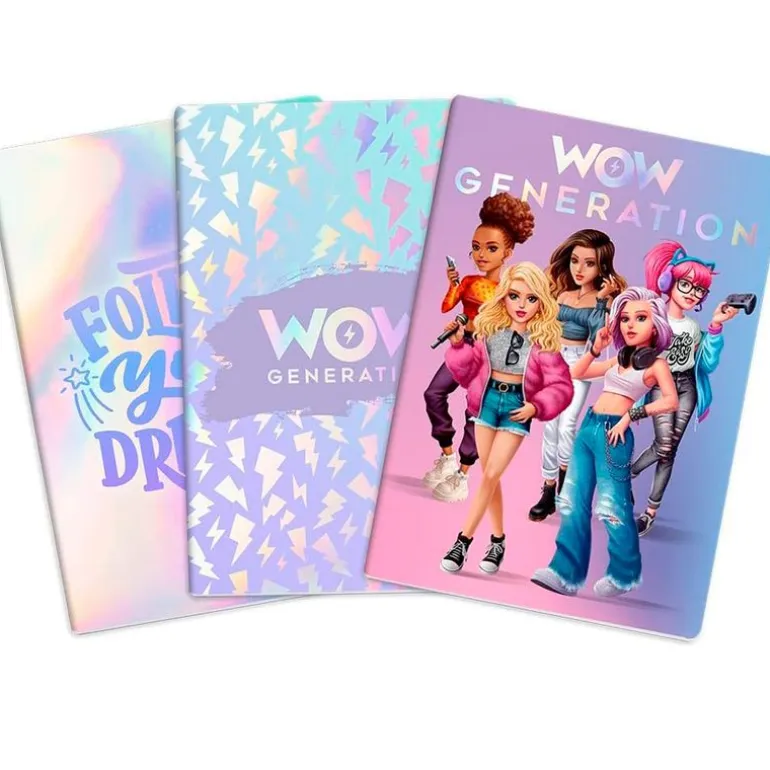 Pack que contiene 3 cuadernos de tamaño A5 de la colección WOW Generation.