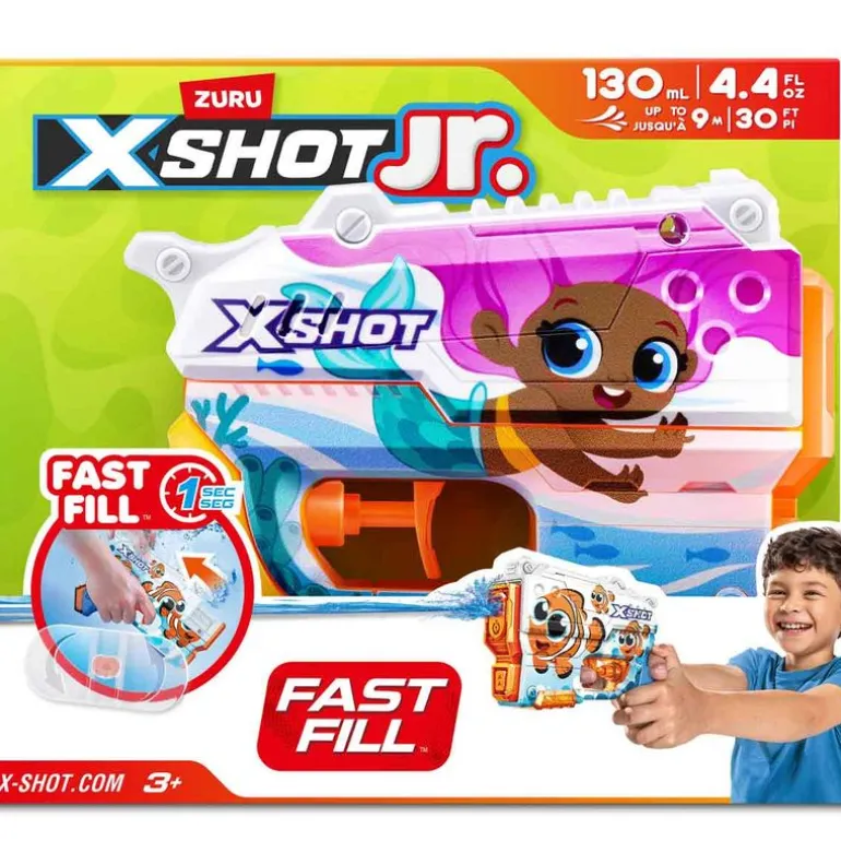 Pistola de agua para los más pequeños de la casa de la colección XShot Junior. Con un depósito de agua de 130 ml ¡Podrás llenarla rápidamente para seguir jugando! Recomendado a partir de 3 años. EXISTEN MODELOS DIFERENTES. SE VENDEN POR SEPARADO. SE SURTIRÁN SEGÚN EXISTENCIAS. AL REALIZAR LA COMPRA, PUEDES RECIBIR CUALQUIER MODELO SURTIDO AL AZAR, INCLUIDOS MODELOS QUE NO SE ENCUENTREN EN LAS FOTOS. PRECIO POR UNIDAD